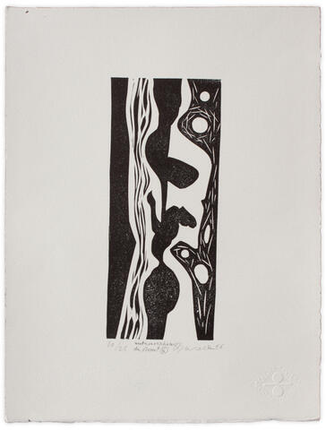 Linogravure sur papier Rives, 20,5 x 13,5 cm pour une feuille de 33 x 25 cm.