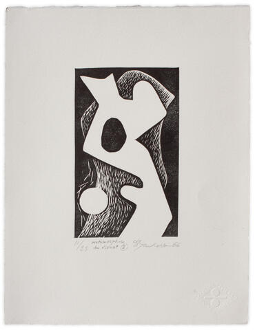 rgba(255,255,255,1) Henri BavieraMÉTAMORPHOSE DU VIVANT — 1966Linogravure sur papier Rives, 20,5 x 13,5 cm pour une feuille de 33 x 25 cm.© Atelier Henri Baviera Demande d'information