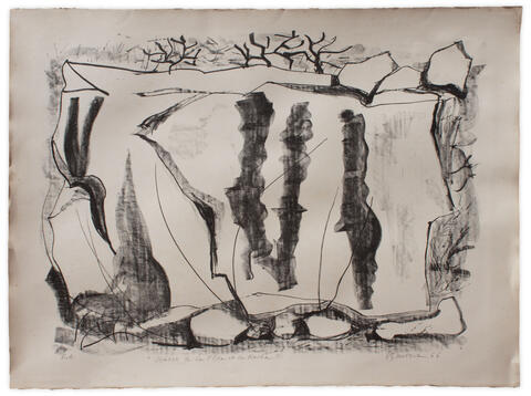 rgba(255,255,255,1) Henri BavieraOSMOSE DE LA FLORE ET LA ROCHE — 1966Lithographie sur papier d’Arches, 48 x 66 cm pour une feuille de 57 x 76 cm.© Atelier Henri Baviera Demande d'information
