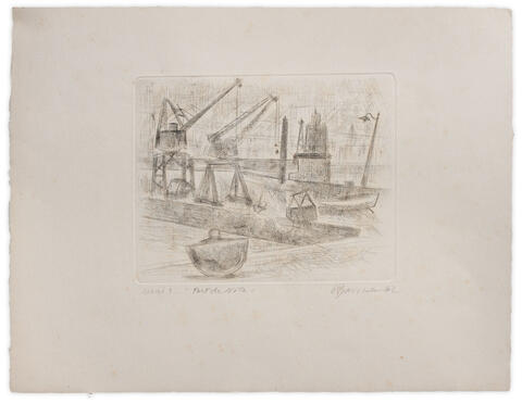 rgba(255,255,255,1) Henri BavieraPORT DE NICE — 1962Gravure eau-forte sur papier Rives, 13 x 17 cm pour une feuille de 25 x 33 cm. Tirage à 6 exemplaires. © Atelier Henri Baviera Demande d'information