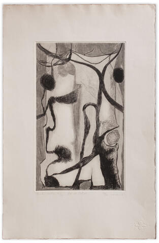 rgba(255,255,255,1) Henri BavieraROC ET SELVE — 1965Gravure pointe-sèche sur papier d’Arches, 33 x 19,5 cm pour une feuille de 51 x 33 cm.© Atelier Henri Baviera Demande d'information