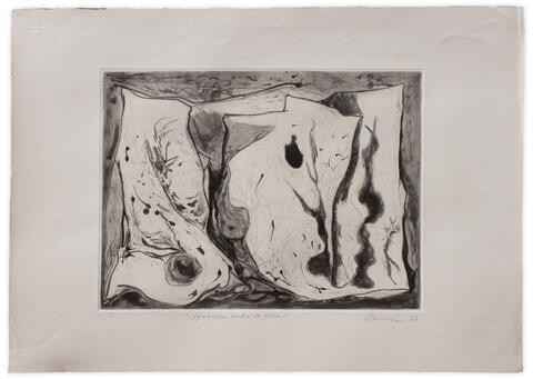 rgba(255,255,255,1) Henri BavieraSYMBIOSE ROCHE ET FLORE — 1965Gravure pointe-sèche sur papier d’Arches, 29 x 33 cm pour une feuille de 45 x 63 cm.© Atelier Henri Baviera Demande d'information