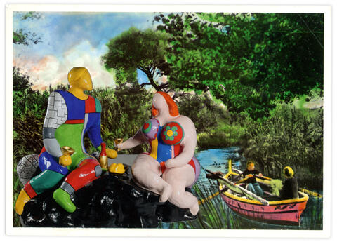 Collage papier sur le carton d’invitation de l’exposition Anne et Patrick Poirier