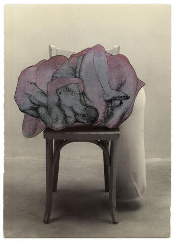 Collage papier sur le carton d’invitation de l’exposition Anne Rochette