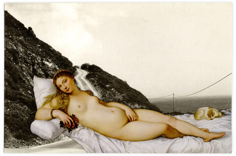 Collage papier sur le carton d’invitation de l’exposition Bernard Plossu,