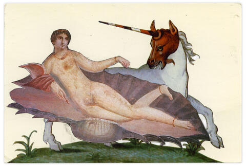Collage papier sur carte postale Licorne
