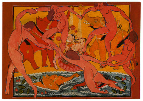 Collage papier sur carte postale Exo elephants bathe the goddess Gaja laksmi who is seated on a lotus