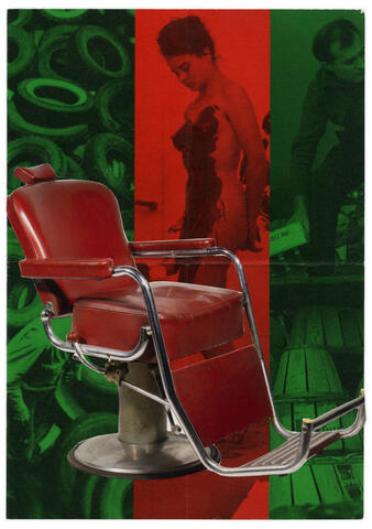 Collage papier sur le carton d’invitation de l’exposition Hors Limites. L’art et la vie. 1952-1994.
