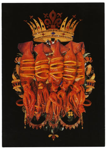 Collage papier sur le carton d’invitation de l’exposition Trésors des Médicis.