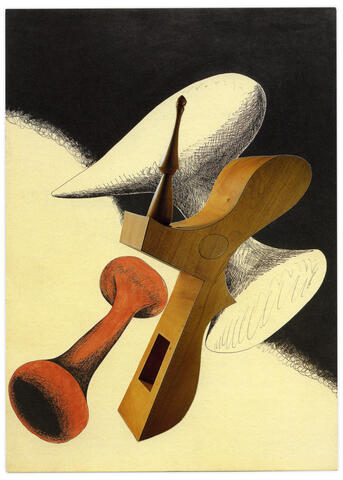 Collage papier sur le carton d’invitation de l’exposition Collection du cabinet d’art graphique.