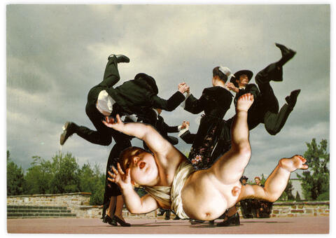Collage papier sur carte postale Danses Gwenedour du pays D’ourle