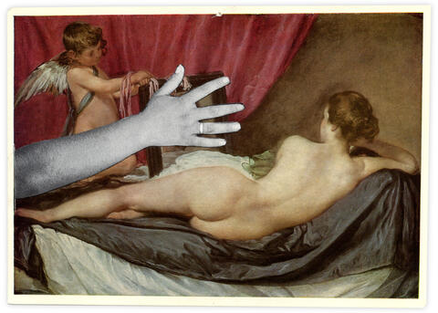 Collage papier sur carte postale Diego Velazquez