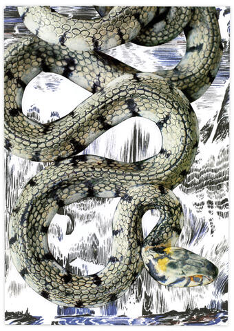Collage papier sur le carton d’invitation de l’exposition Abdelkader Benchamma