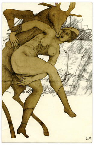 Collage papier sur le carton d’invitation de l’exposition 100 dessins