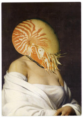 Collage papier sur carte postale Hippolyte Flandrin, jeune fille dit la florentine.