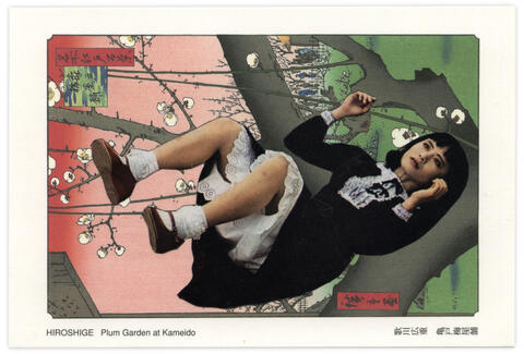 Collage papier sur carte postale Hiroshige