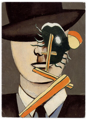 rgba(255,255,255,1) Henri FoucaultDouble jeu, Jean Helion - 2025Collage papier sur carte postale Jean HelionEmilenan.15 x 11 cm© Henri Foucault Studio Demande d'information