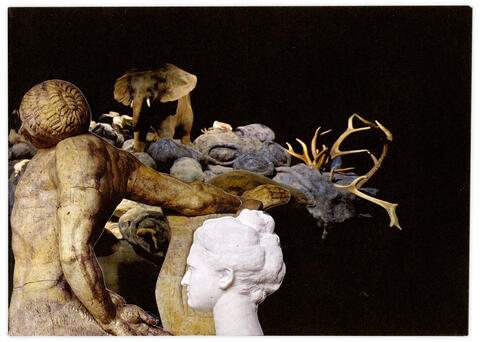 Collage papier sur le carton d’invitation de l’exposition Jean-Luc Parant. Mémoire du merveilleux.