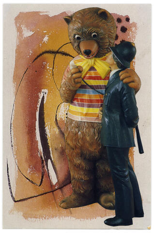 Collage papier sur le carton d’invitation de l’exposition Jean-Pierre Haenni.