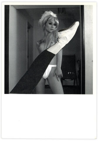 rgba(255,255,255,1) Henri FoucaultDouble jeu, Jean Rault - 2025Collage papier sur carte postale Jean RaultHinako toplessnan.15 x 10.5 cm© Henri Foucault Studio Demande d'information