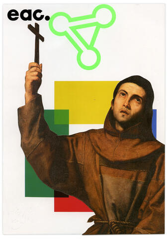 Collage papier sur le carton d’invitation de l’exposition Jean Widmer, du concret au quotidien.