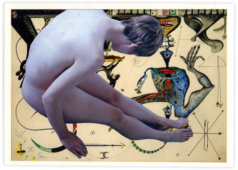 Collage papier sur le carton d’invitation de l’exposition Barcelone 1947 - 2007