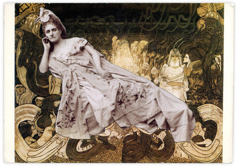 rgba(255,255,255,1) Henri FoucaultDouble jeu, J.Th. Toorop - 2025Collage papier sur carte postale J.Th. TooropDe drie bruidennan.10.5 x 15 cm© Henri Foucault Studio Demande d'information
