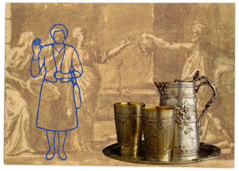 Collage papier sur le carton d’invitation de l’exposition Le dessin en France au XVIIème Siècle