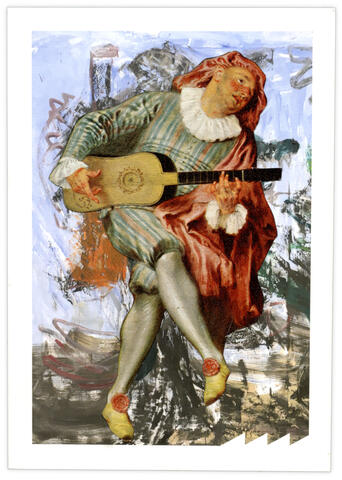Collage papier sur le carton d’invitation de l’exposition Le gros rouge, Hervé Ingrand, Le Shed, Notre-Dame de Bondeville. Vernissage, le 24 septembre 2022