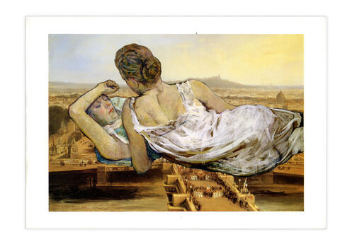 Collage papier sur le carton d’invitation de la présentation des statues des villes de France