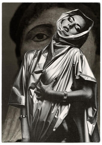 Collage papier sur le carton d’invitation de l’exposition À côté rêve un sphinx accroupi