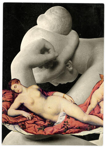Collage papier sur le carton d’invitation de l’exposition Olvidar a Rodin ?