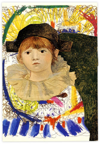 Collage papier sur carte postale Pablo Picasso