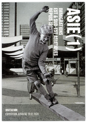 Collage papier sur le carton d’invitation de l’exposition Immigrations est & sud-est asiatiques depuis 1860