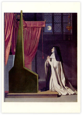 Collage papier sur carte postale Philippe de Champaigne, la vision de sainte Julia