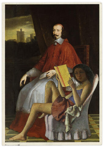 Collage papier sur carte postale Philippe de Champaigne, Le cardinal Mazarin