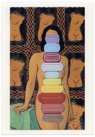Collage papier sur carte postale René Magritte, Lola de Valence