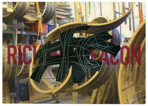 Collage papier sur le carton d’invitation de l’exposition Richard Deacon à l’atelier Brancusi