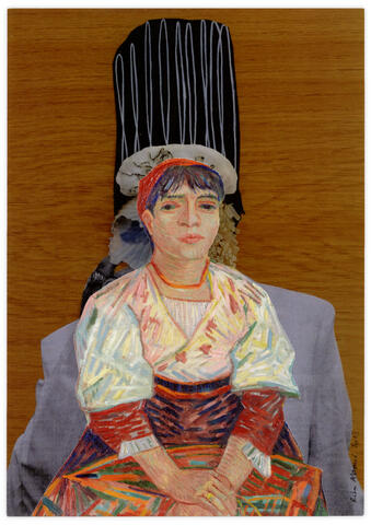 Collage papier sur le carton d’invitation de l’exposition Rita Alaoui