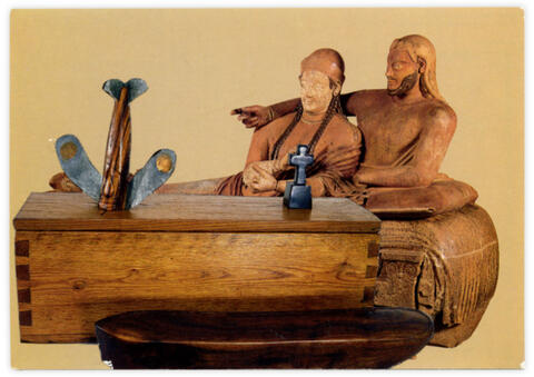 Collage papier sur carte postale Sarcophage en terre cuite