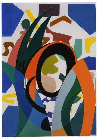 Collage papier sur le carton d’invitation de l’exposition Shirley Jaffe