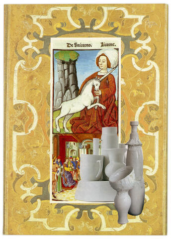 Collage papier sur le carton d’invitation de l’exposition Trésors de Bibliophilie.