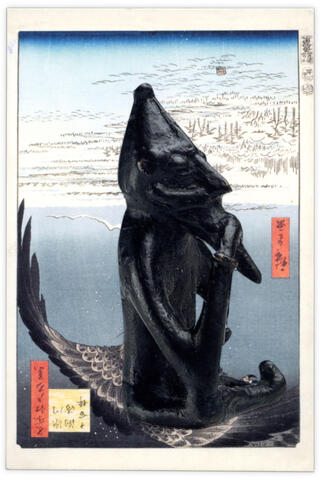 Collage papier sur carte postale Utagawa Hiroshige