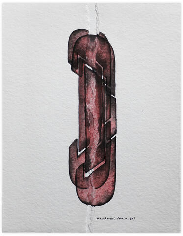 Aquarelle et encre de Chine, plume et lavis avec arrachage et frottage sur papier.