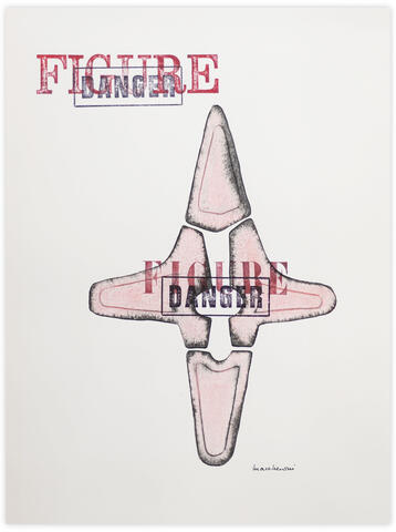 Aquarelle et encre de Chine, plume et lavis avec tamponnage double FIGURE et DANGER sur papier.