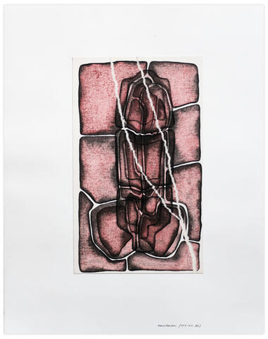 Aquarelle et encre de Chine, plume et lavis avec arrachage et frottage sur papier contrecolllé sur Arches.