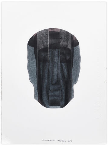 Collage en techniques mixtes (découpe, bandes de toile peinte, huile, aquarelle, feutre et acrylique) sur papier fort.