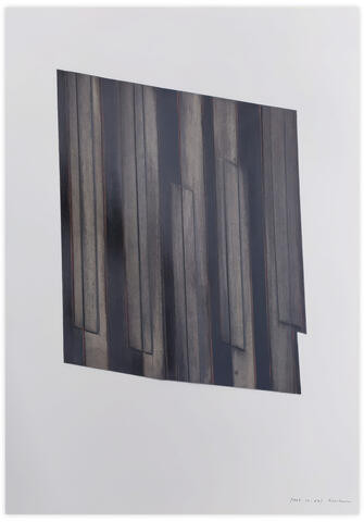 Peinture en techniques mixtes (gesso, crayon gras, sanguine, graphite, hachure et collage de bandes papier) sur carton sable, contrecollée sur carton sable