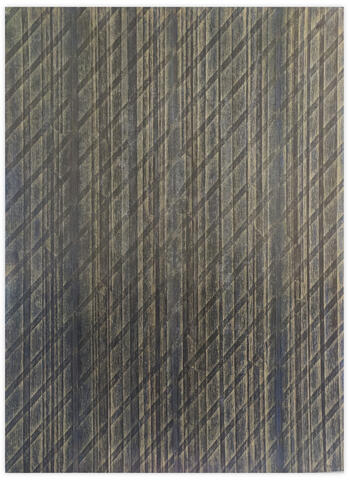 Peinture en techniques mixtes (gesso, crayon gras, sanguine, graphite, hachure et collage de bandes papier) sur papier fort.