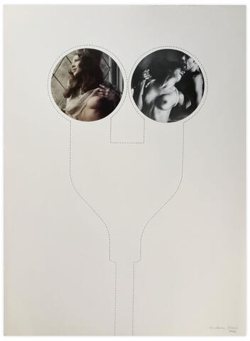 Collage image de magasine avec découpe en reprint de l’horodateur sur feuille d’Arches.